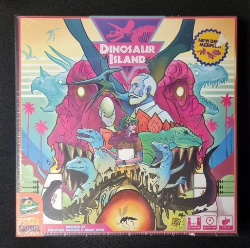 This 2nd edition of Dinosaur Island features two new dinosaur meeples, bringing the total number of dinosaur meeple shapes to three in this base game.
