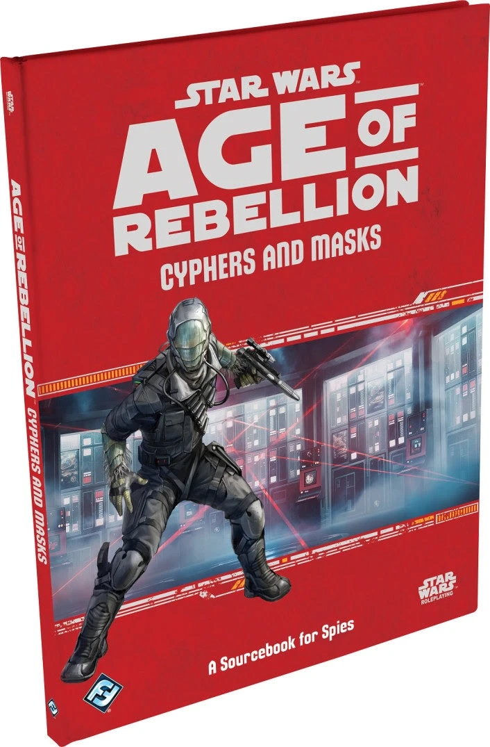 Cyphers and Masks is a sourcebook for the Star Warsâ„¢: Age of Rebellion Roleplaying Game that greatly expands the options and opportunities for the Spy career. At 96 full-color pages, Cyphers and Masks includes new specializations and species perfect for starting a new campaign or integrating into existing ones. New vehicles, equipment, and droids designed to be assets and adversaries to characters engaging in clandestine operations are included with new rules for utilizing the skills most often associated with Spies and their tradecraft. Gamemasters are also given additional tools and guidance for building stories for Spy characters with an emphasis on Intelligence and Counterintelligence operations.