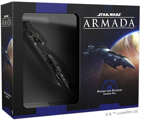 This pack includes everything you need to add 1 Recusant-class Destroyer to your games of Star Warsâ„¢: Armada including 1 painted plastic ship with base and fin, 2 ship cards, 14 upgrade cards, and 13 tokens