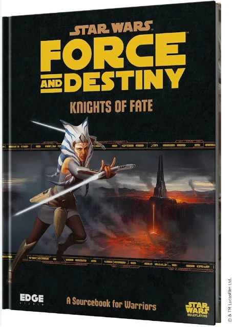 The galaxy is a dangerous place. The teachings and traditions of the Jedi have been lost to treachery and murder. A new generation of those who wield the Force alongside martial training or natural physical prowess stand against the corrupting darkness. Whether to protect the innocent or assault the enemies of peace, Warriors invoke unparalleled mastery of combat bolstered by the mysterious power of the Force. Knights of Fate is a sourcebook for the Force and Destiny Roleplaying Game focused on the Warrior career. Included in its 96 full-color pages are a multitude of character options such as three new species and three new specialization trees that emphasize unique methods of fighting with the Force. New starships, vehicles, droids, weapons, and other equipment will help expand your campaign’s richness and variety whether it exclusively utilizes Forces and Destiny or any of the other Star Wars Roleplaying Game line. Knights of Fate also features support and guidance for reinforcing the themes and roles of Warriors in the narrative, from suggestions on how they could approach different challenges to the ways in which other character Careers might interact with a Warriors capabilities and limitations.