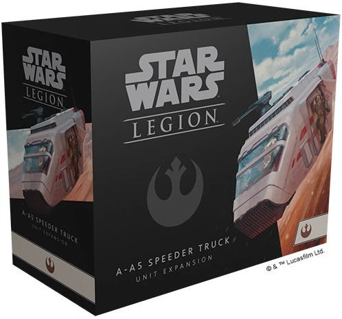 This expansion contains one finely sculpted, unpainted hard plastic A-A5 Speeder Truck miniature, enough for one heavy unit, that can be assembled with its side door open or closed and outfitted with either a quad laser or a heavy laser retrofit. In addition to these cosmetic customizations, 16 upgrade cards invite players to modify how your A-A5 Speeder Truck operates in battle by adding new pilots, weapons, and comms systems.