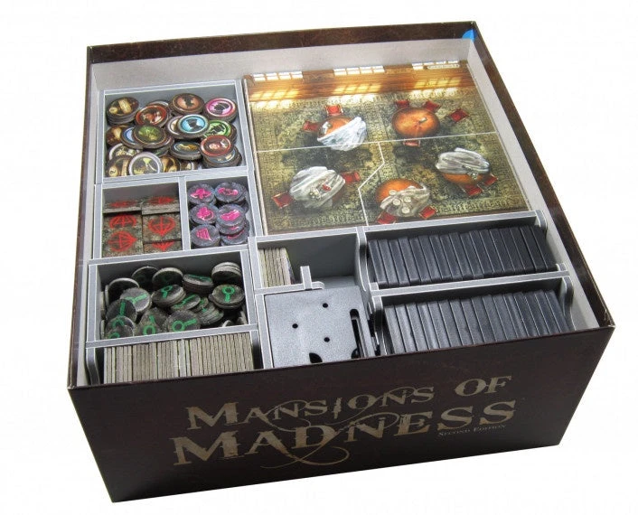 This Campaign 3 insert is designed to be compatible with Mansions of Madness 2nd Edition®, and Beyond the Threshold®, Streets of Arkham®, Sanctum of Twilight®, and Horrific Journeys® expansions. The design provides both efficient storage and improved game play. The trays can be utilised during the game, and they greatly aid set-up and clear-away times.