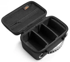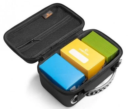 The Game Shell is a portable case, perfectly sized for a wide variety of usages. It fits up to 250 double-sleeved cards, tokens, dice or even complete small games. The outside material comes in durable and resistant nylon with a premium structure. It boasts a reinforced handle and two zippers, hidden and protected by the outer material. On the inside, the Game Shell provides an accessories compartment and two adjustable dividers. This enables a completely free setup, adjustable to your needs and preferences.