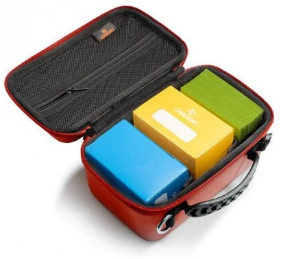 The Game Shell is a portable case, perfectly sized for a wide variety of usages. It fits up to 250 double-sleeved cards, tokens, dice or even complete small games. The outside material comes in durable and resistant nylon with a premium structure. It boasts a reinforced handle and two zippers, hidden and protected by the outer material. On the inside, the Game Shell provides an accessories compartment and two adjustable dividers. This enables a completely free setup, adjustable to your needs and preferences.
