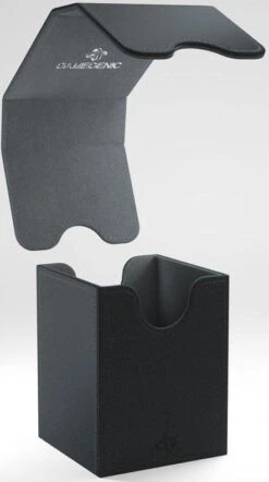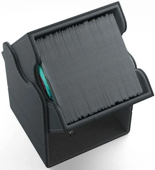 The convertible Squire gives easy access to a double-sleeved 100-card deck. The Convertible line is designed to present cards in new and unique ways. Remove the lid, attach it to the bottom or start tilting your box in a wide variety of ways. This elegant deck box is manufactured with Nexofyber material and protects cards inside with a soft microfiber lining. Powerful magnets keep it safely closed.