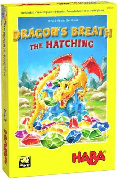 Oh no! The nest, complete with dragon egg and sparkling stones, is frozen inside an ice column! Help Dragon Mom melt the thick layer of ice, but be careful that the egg doesn’t fall out of the nest! Earn points by collecting the fallen sparkling stones and placing them on your amulets. The player with the most points at the end of the game is the winner. Contents: 3 ice rings, 35 sparkling stones (7 each in 5 colors), 1 dragon egg, 1 nest tile, 1 Dragon Mom, 1 treasure chest, 48 amulet cards, 1 rulebook.