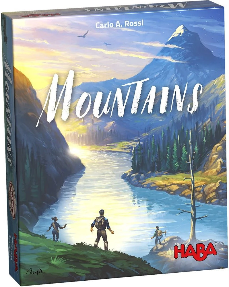 The hiking season has begun, so it’s off to the next summit! But which hikes will the players dare to undertake? Do they have the right equipment for the hike selected? If not, the swap negotiations begin! A good memory, some luck and a favor or two from fellow hikers will help players collect the most stamps in their summits booklet! Contents: 1 mountain plan, 32 equipment cards (16 blue, 16 green), 62 hiking cards (in 6 increasing degrees of difficulty), 1 cloth bag with 70 blue and 10 yellow favor stones, 5 summit books, 1 tear-off pad with season sheets, 1 summit stamp with case, 1 stamp pad, 1 set of instructions.