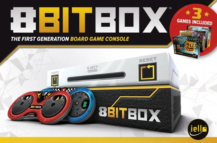 8 Bit Box is a board game that will remind you the golden age of video games as each player has a gamepad to program their actions, using three wheels: direction, symbol, and value.