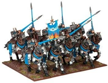 Knight Paladins fight on fiery barded warhorses and are amongst the most feared cavalry units in all of Mantica. Armoured in heavy, ornate plate armour, the Paladins exult in combat,nothing is more sacred to them than the blood of Basileaâs enemies in the dust.