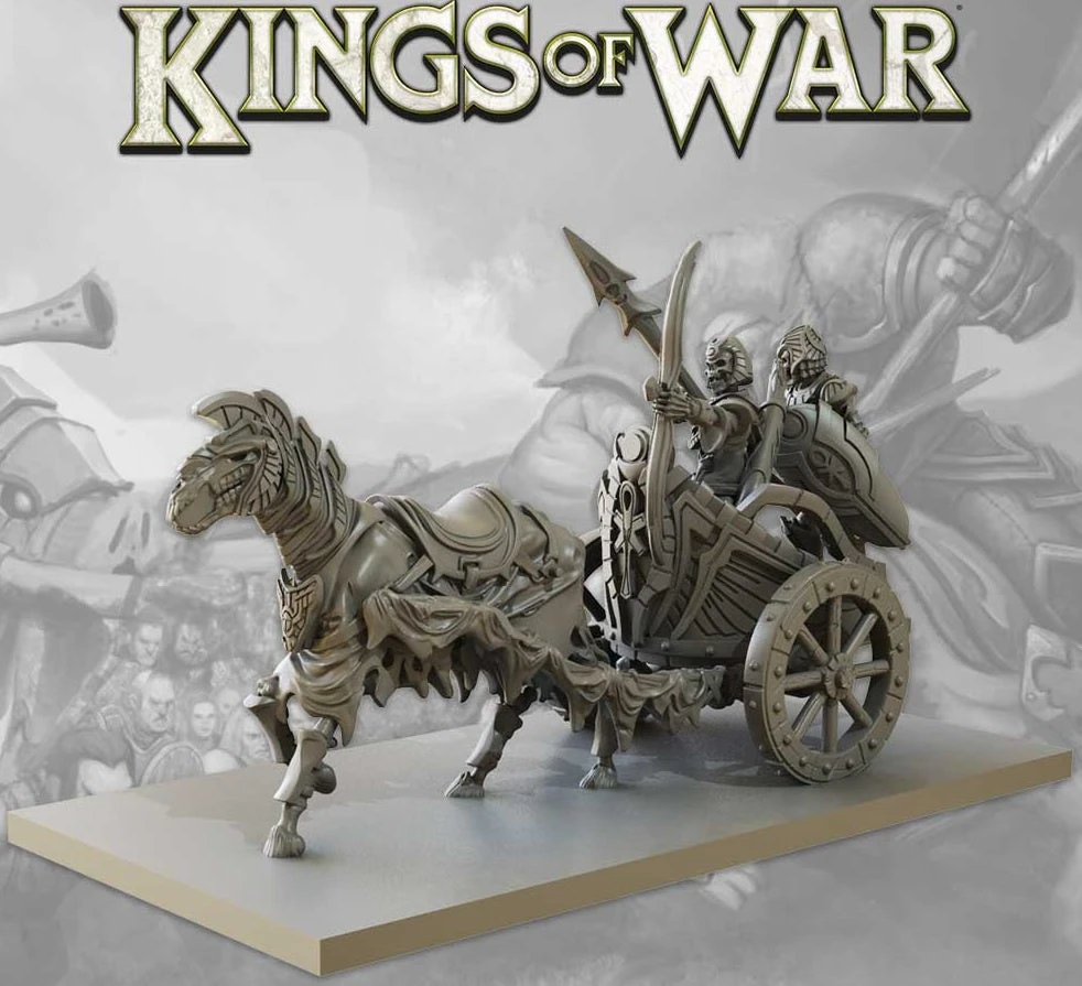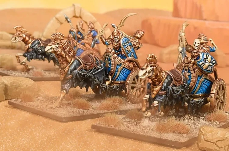 Once used in both ceremonial roles and in times of conflict, these heavy chariots now only see service in the ranks of the empire’s army, thundering towards the enemy and bearing the revenants to war.