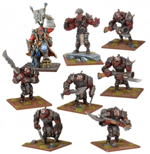 Ogres are extremely strong, and so can wield heavy swords and shields. The armour of the younger warriors is generally of tough hide, but once they join the ranks of a mercenary band an Ogre will spend his first few months’ pay on proper armour of thick iron plate. Ogres may carry either giant crossbows the size of small ballistae or fearsome blunderbusses that are more akin to short-ranged cannons than any firearm a man might wield. Their first loyalty is to their captain, but a close second, and who seems to get an unusual amount of protection on the battlefield, is the company paymaster.