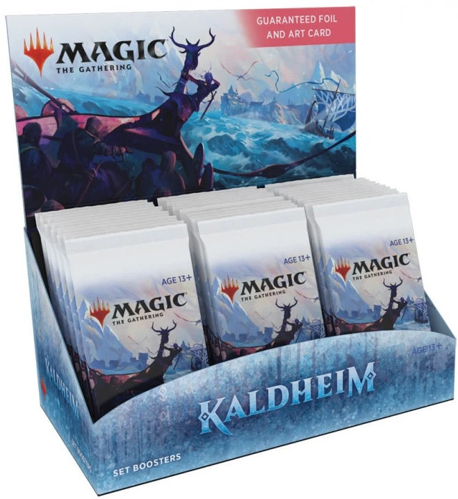 Set Boosters are the go-to if you’re looking to rip open a pack and see what you get. What Draft Boosters are to drafting and Collector Boosters are to collecting, Set Boosters are to cracking packs. PRICELESS REWARDS. Magic the Gathering Kaldheim Set Boosters come with a foil in every pack (sometimes two) and wildcard slots that give each pack a chance of containing extra rares. SIGNATURE CARDS. Each Set Booster pack includes an art carda beautiful piece of borderless MTG art, sometimes featuring a foil signature from the artist. PEERLESS WONDERS. Some Set Boosters include a card from Magic’s past. From the powerful to the nostalgic to the downright wild, these cards draw from the multitude of themes and mechanics in MTG history.