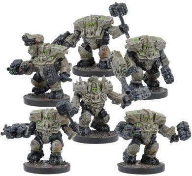 The Forge Guard are the elite of Forge Father armies. Clad in thick interlocking armour plates, they are deployed only when victory is critical. This set contains 6 hard plastic models, including: Forge Hammers and wrist-mounted Hailstorm Rifles Autocannon, Magma Cannon and Missile Launcher Options Huscarl in Forge Guard Armour 25mm Round Bases Models supplied unassembled and unpainted.